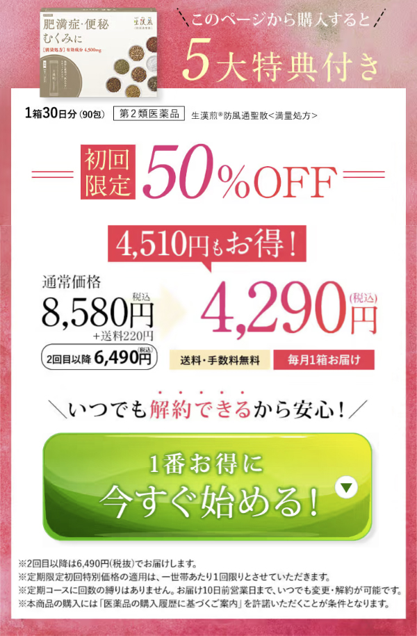 高品質な防風通聖散が30日分で税込みたった8,580円!