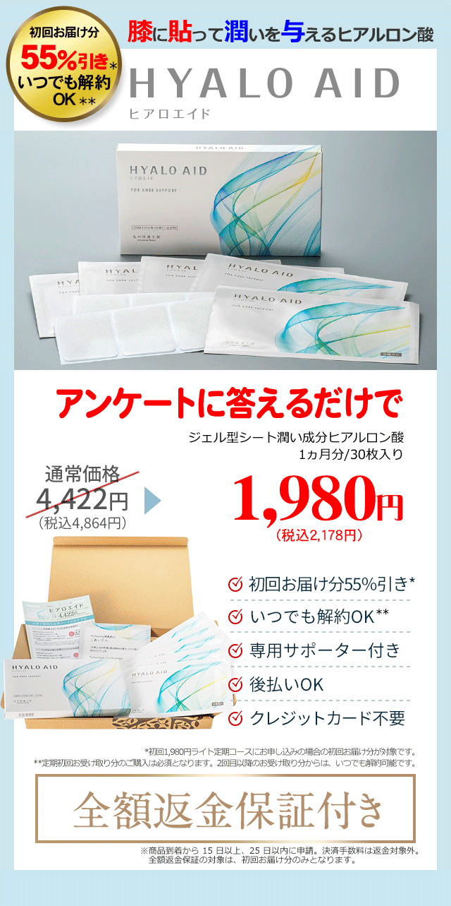膝の悩み貼って潤いを与えるヒアルロン酸