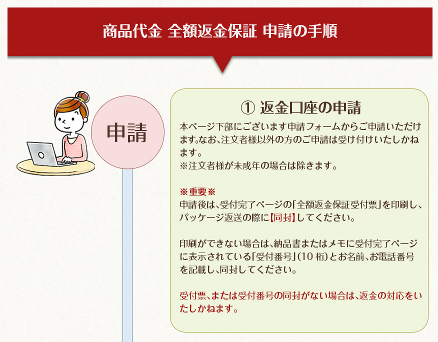 「ヒアロエイド」の全額返金保証制度の対象は、商品を使用された方が対象です。