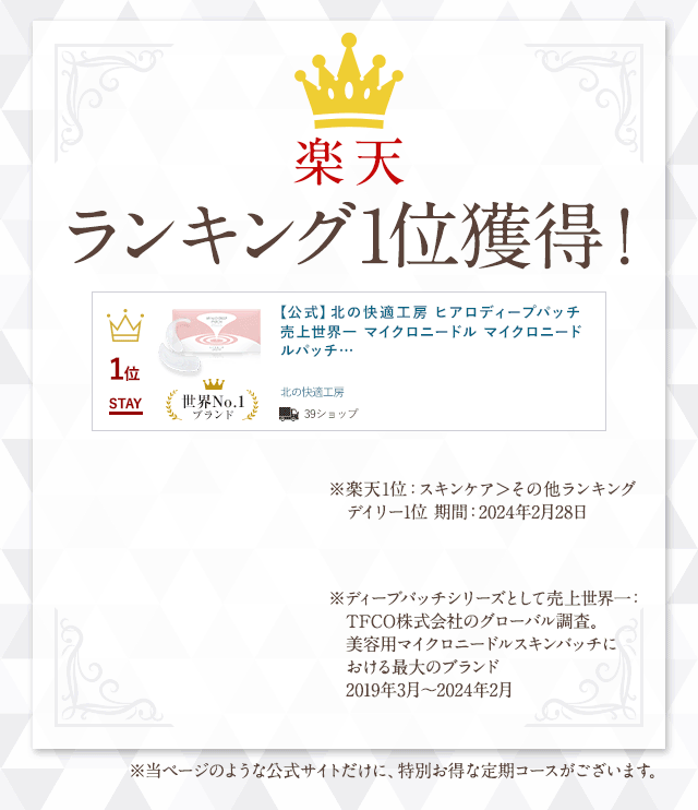 *ディープパッチシリーズとして売上世界一:TFCO株式会社のグローバル調査。美容用マイクロニードルスキンパッチにおける最大のブランド 2019年3月~2024年2月