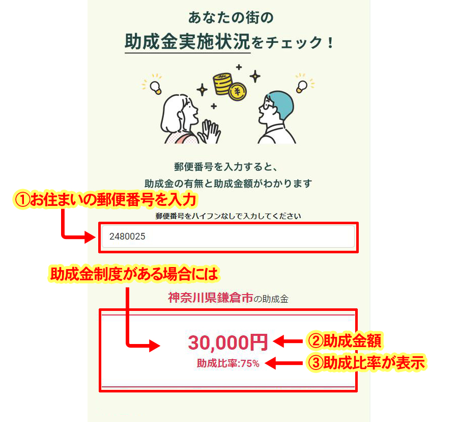 自治体によっては、助成金45,000円で助成比率90%のケースもあります!