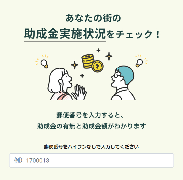 生ごみ処理機のルーフェン(loofen)の公式サイトを開くと、上図のように「あなたの街の助成金実施状況をチェック!」という画面が出てきます。