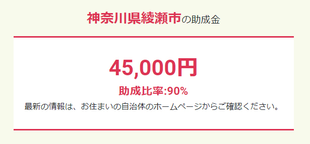 神奈川県綾瀬市の場合だと助成金45,000円ももらえます!