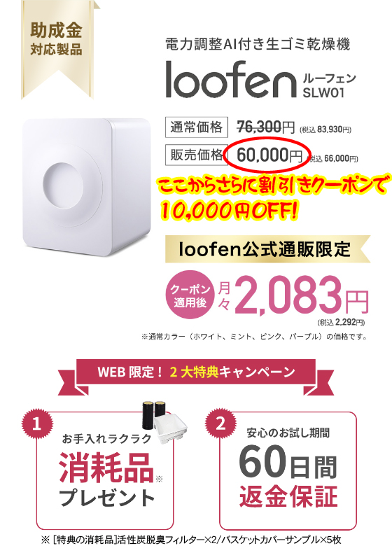 何と実質5,000円で生ごみ処理機loofenをゲットできるんです!
