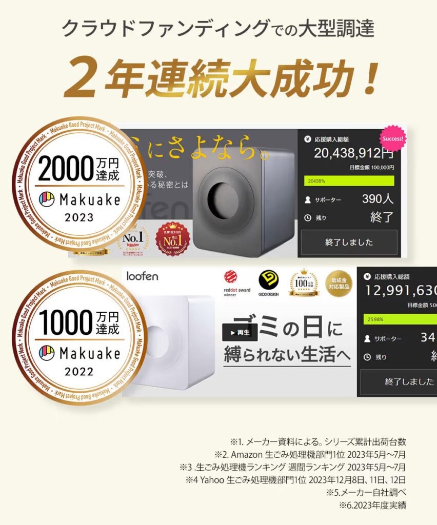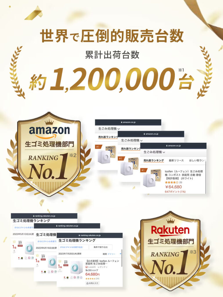 loofen(ルーフェン)は、めざましテレビでも紹介された家庭用生ごみ乾燥機(処理機)で、累計出荷台数は120万台を超える隠れた大ヒット製品なんです!