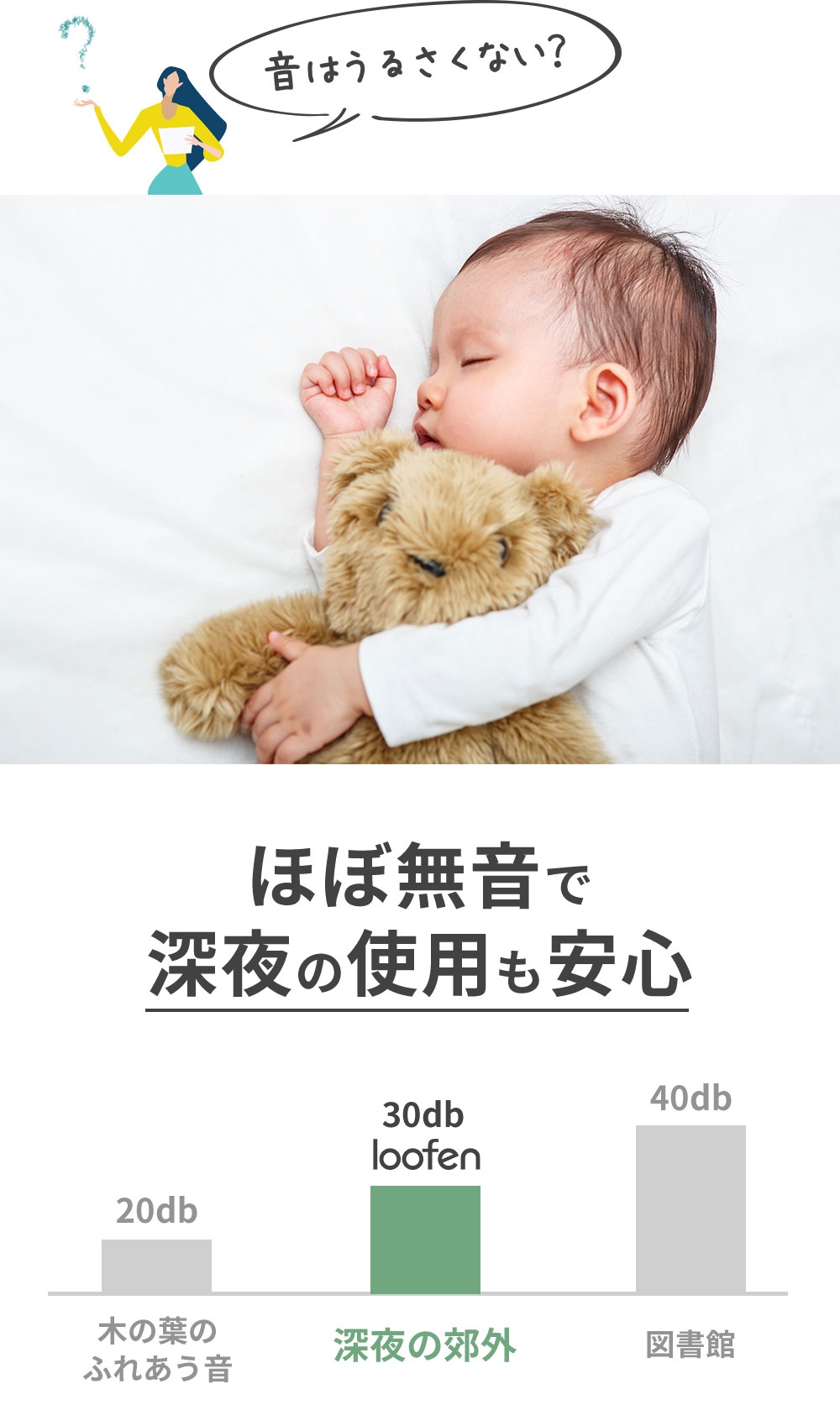 だから、赤ちゃんがいるご家庭はもちろん、深夜の稼働音が気になる方にもおすすめです!