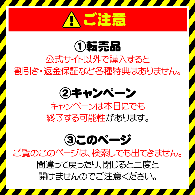 上記ボタンをクリック後、ページが表示されなかった場合は、キャンペーンが終了もしくは、商品が完売していますので、ご了承ください。